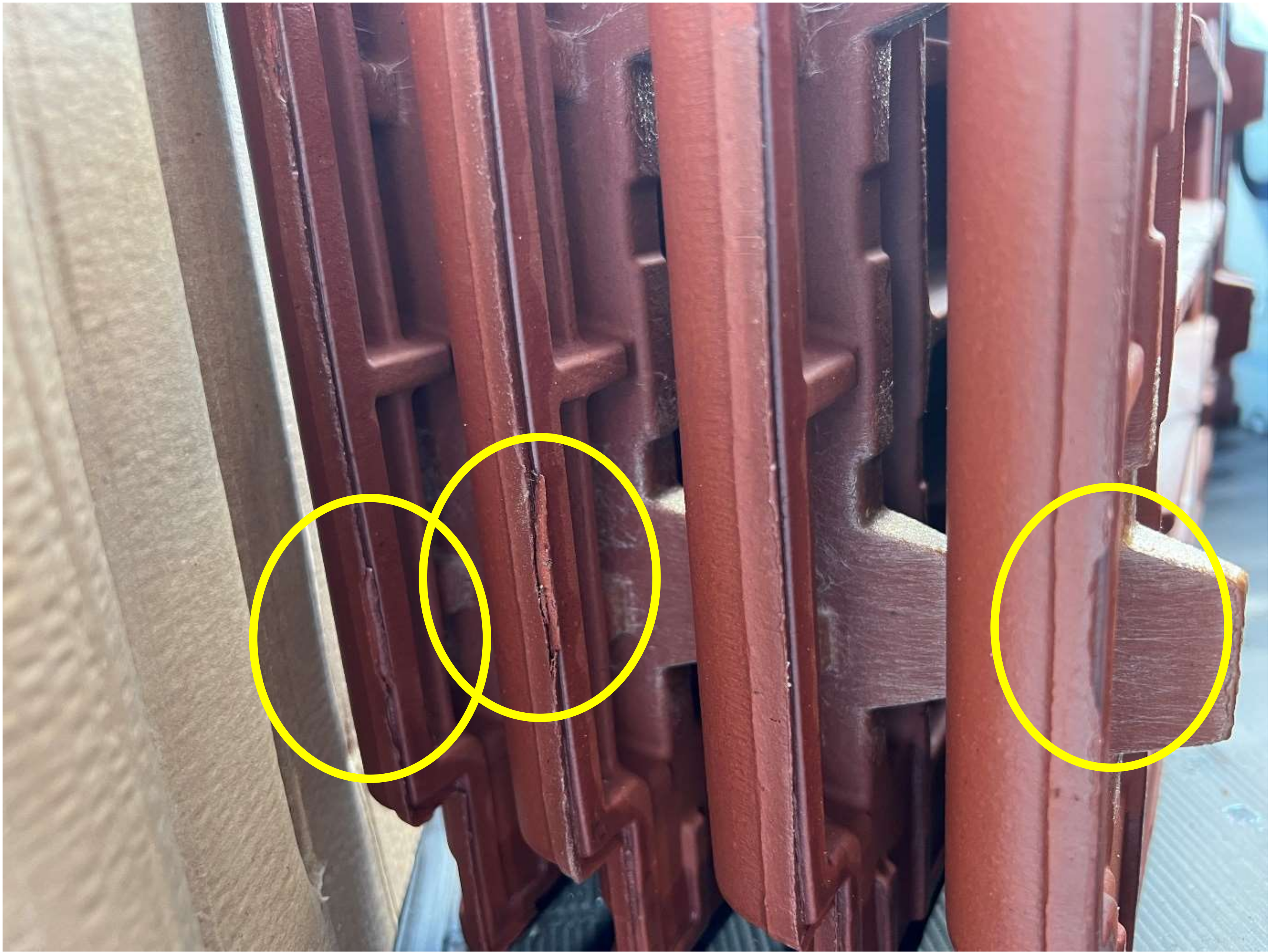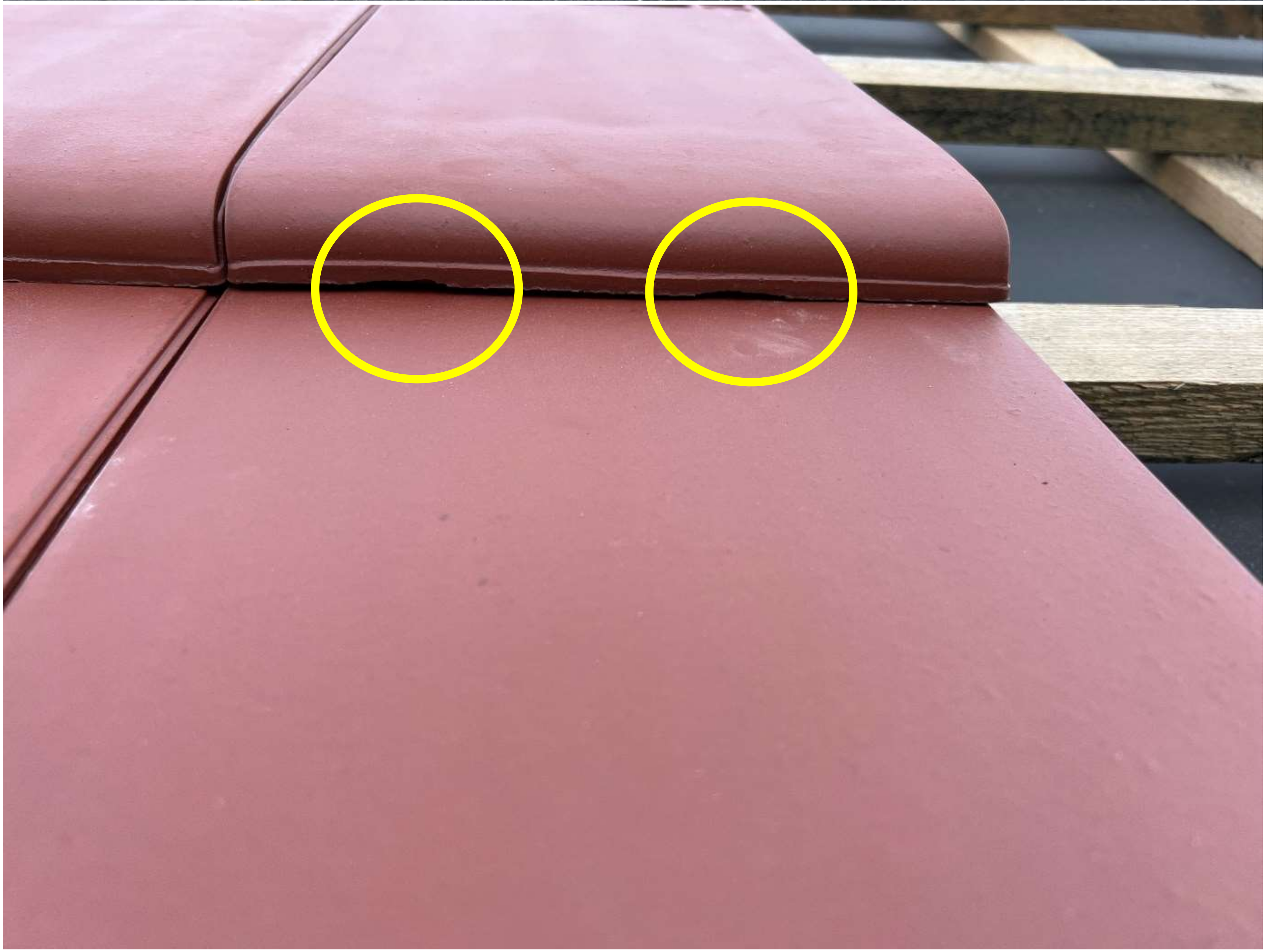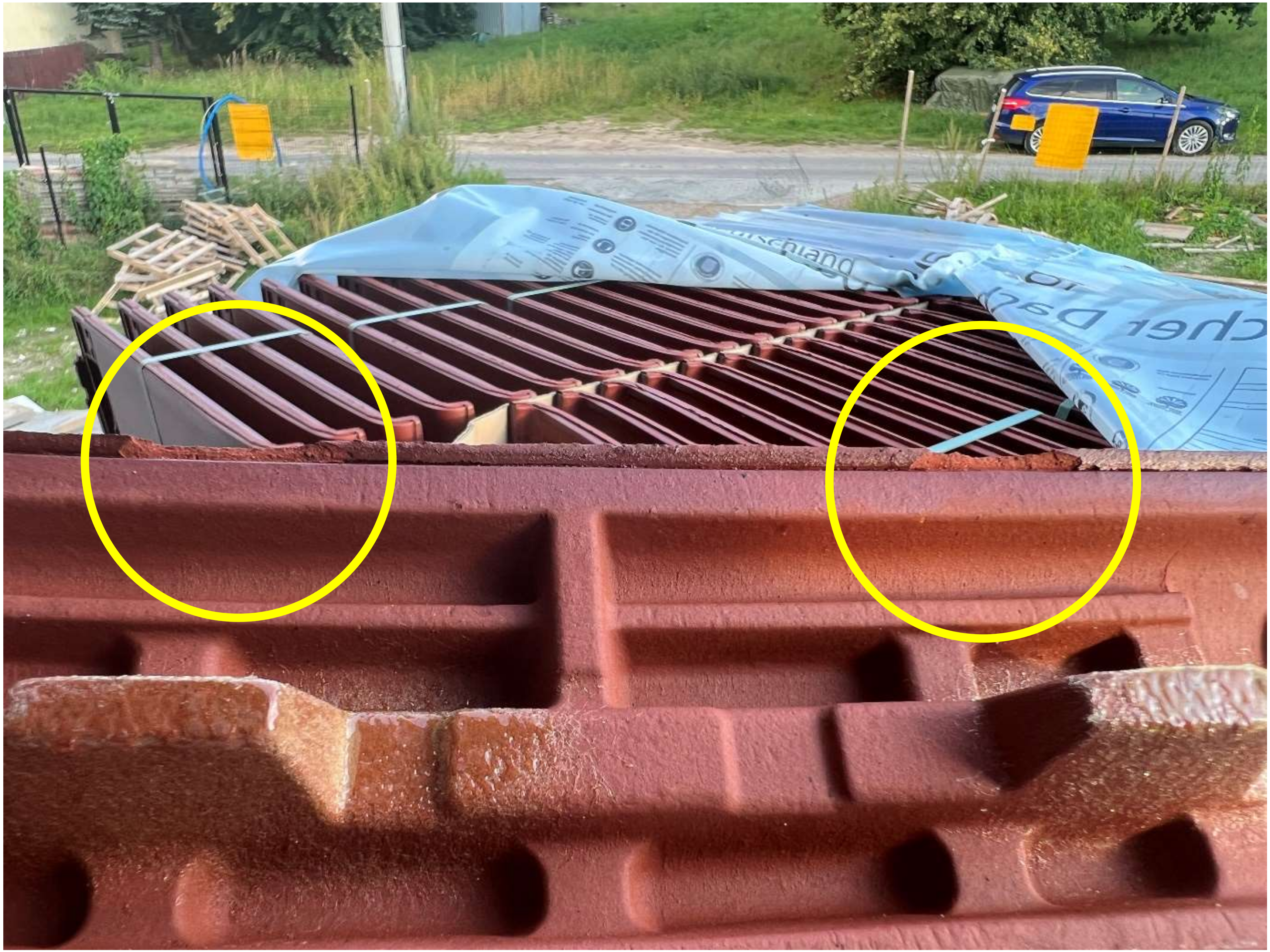 Niestety okazało się, że z jednej strony od spodu dachówki maja uszkodzenia, które po położeniu na dachu widoczne są jako szpary.