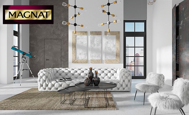 We wnętrzach w stylu loftowym buduje się atmosferę wykorzystując efekt kontrastu. Surowy beton podkreśla ciepło tkanin i drewna, gładkość mebli, nasycenie kolorów. Fragment betonowej ściany we wnętrzu tworzy niepowtarzalny klimat. To rozwiązanie cieszące się wciąż dużą popularnością nie bez powodu. My polecamy Beton Magnat Style