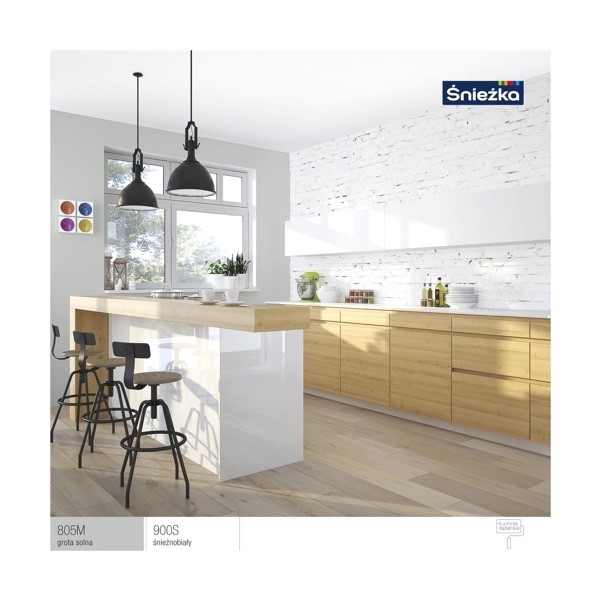 Na pewno do kuchni dałbym bardzo dobrą farbę. Na sufit Śnieżka Kuchania Łazienka, na ściany Śnieżka Satynowa. Pierwsza z nich jest odporna na działanie wilgoci i rozwój grzybów, druga ma świetne właściwości plamoodporne, co w kuchni ma podstawowe znaczenie.