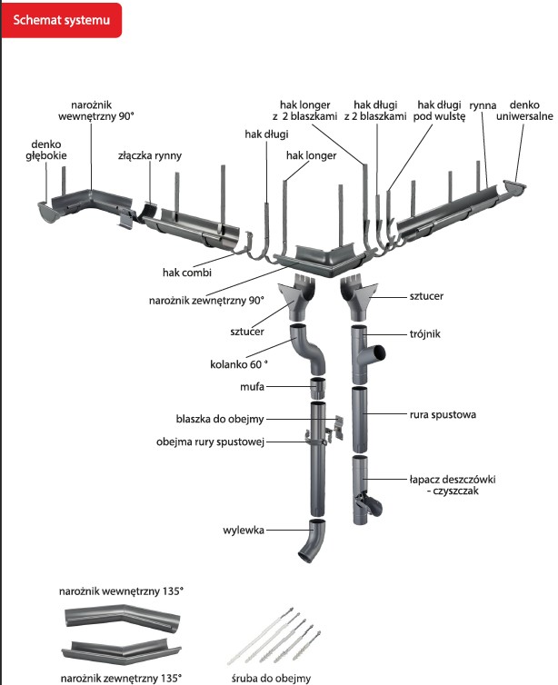 Elementy składowe systemu rynnowego NIAGARA Blachy Pruszyński