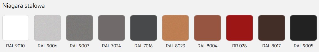 Kolorystyka systemu NIAGARA stalowego powlekanego obustronnym poliuretanem: