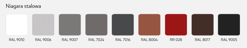 Posiadamy w ofercie system rynnowy NIAGARA poliuretan, dostępny w 9 kolorach, które kolorystycznie dopasowane są do kolorów pokrycia dachowego.