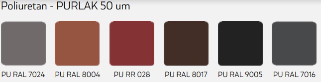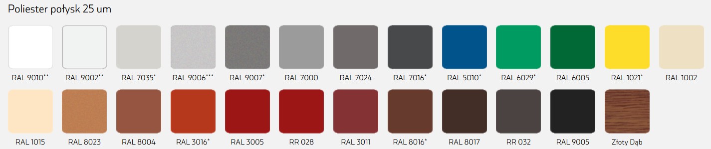 Kolory jasne dostępne są tylko w powłokach poliestrowych w połysku.