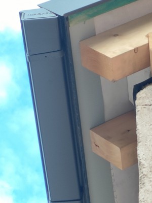 Wykonawca dachu wykonał okap dachu jak na zdjęciu. Nie było tego detalu w projekcie, więc zdaliśmy się na jego sugestie oraz niewielkie doświadczenia z innej budowy z podobnym dachem. Później z kilku względów nie do końca byliśmy z tego rozwiązania zadowoleni jednak powiedzmy że po obejrzeniu zdjęć wykonawcy z innej budowy oraz konsultacji z osobą wykonującą fasady ewentualne znane nam wady tego rozwiązania już zaakceptowaliśmy i nie były one dla nas kluczowe.