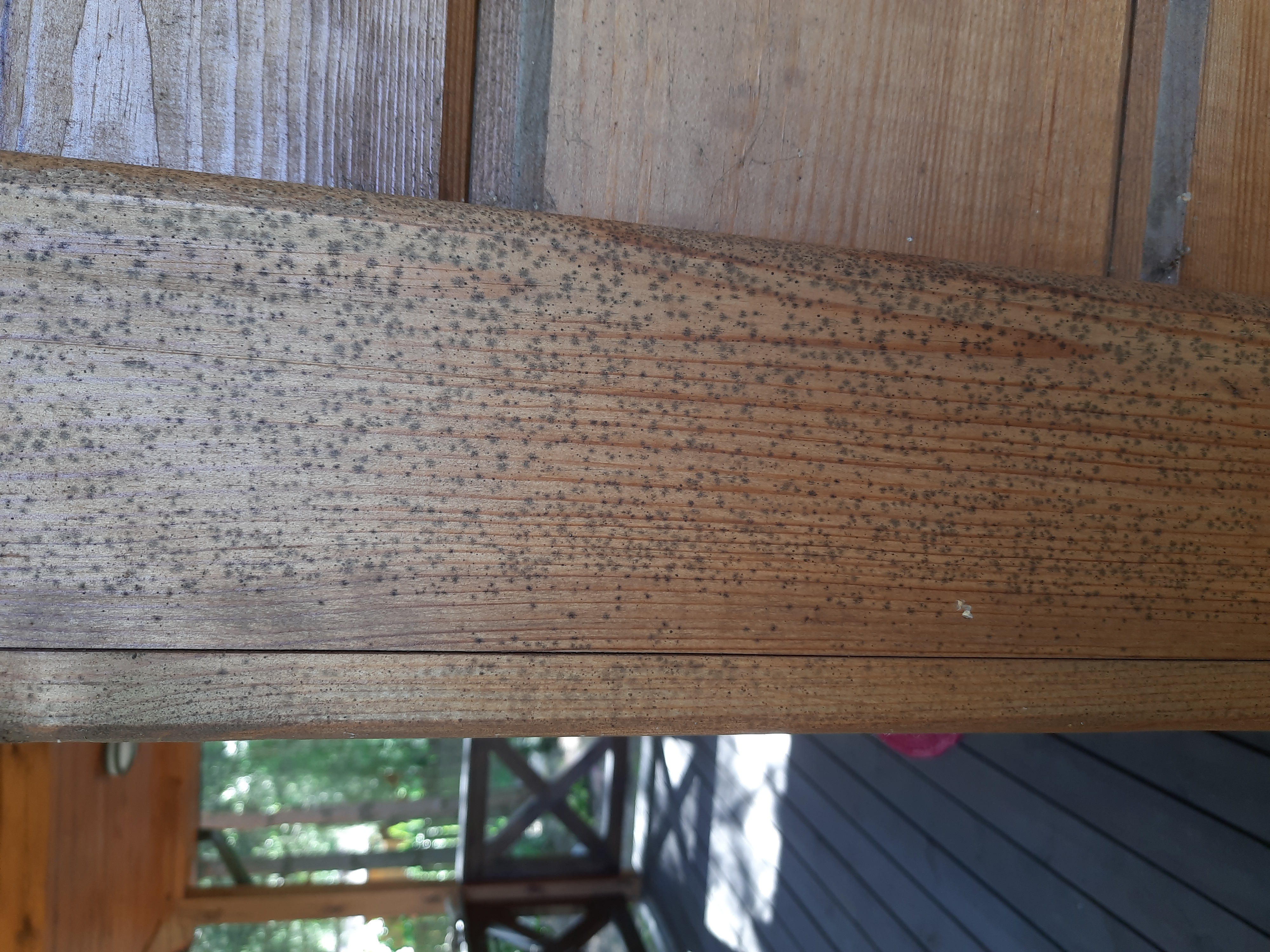 Chciałem w tym roku odmalować z zewnątrz dom drewniany (sosna) postawiony 5 lat temu. Domek stoi w lesie i już na ściany wchodzą czarne kropki, zapewne albo grzyb albo pleśń (jak na załączonych zdjęciach).