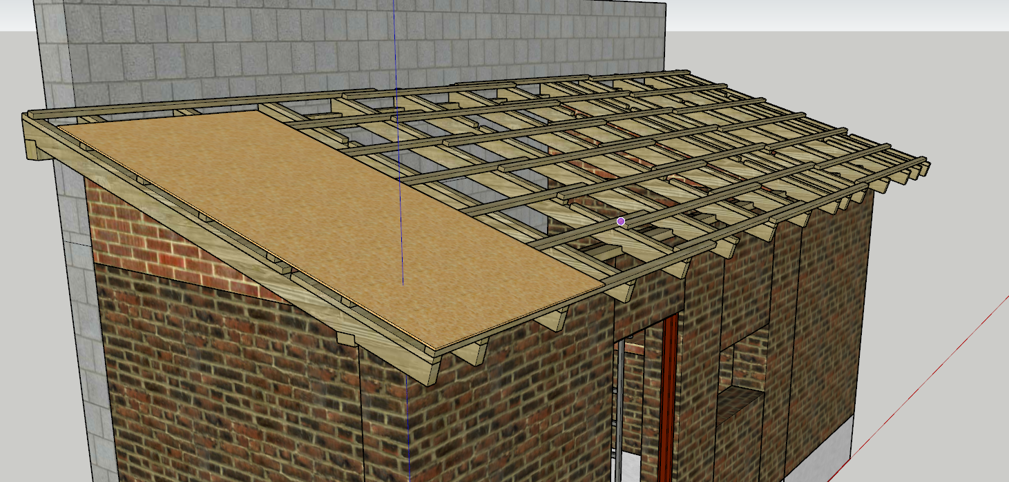 Potrzebuję kilku porad technicznych dotyczących konstrukcji dachu oraz doradzenia w sprawie materiałów do budowy małego dachu o wymiarach 2,8 m x 7,2 m, który zostanie pokryty gontem bitumicznym. Na załączonym projekcie (zdjęcie nr 1) dach ma wspólną ścianę z budynkiem z tyłu, który jest zamieszkały.
