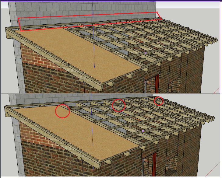 W materiałach, do których udało mi się dotrzeć, są dwie propozycje wykonania wentylacji. Pierwsza polega na wykonaniu tradycyjnej wentylacji przy murze, w miejscu pokazanym na górnej części zdjęcia nr 2 oraz w załączonych filmach instruktażowych 1 i 2. Druga metoda to wykonanie 2-3 wywietrzników połaciowych (zdjęcie nr 3) w miejscach zaznaczonych na dolnej części zdjęcia nr 4.