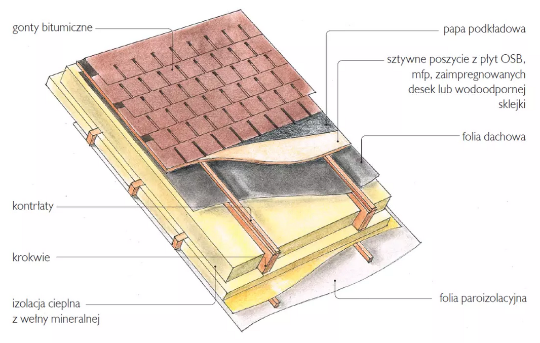 Czy tak położona membrana, wata oraz folia będzie poprawna przy takiej konstrukcji dachu?