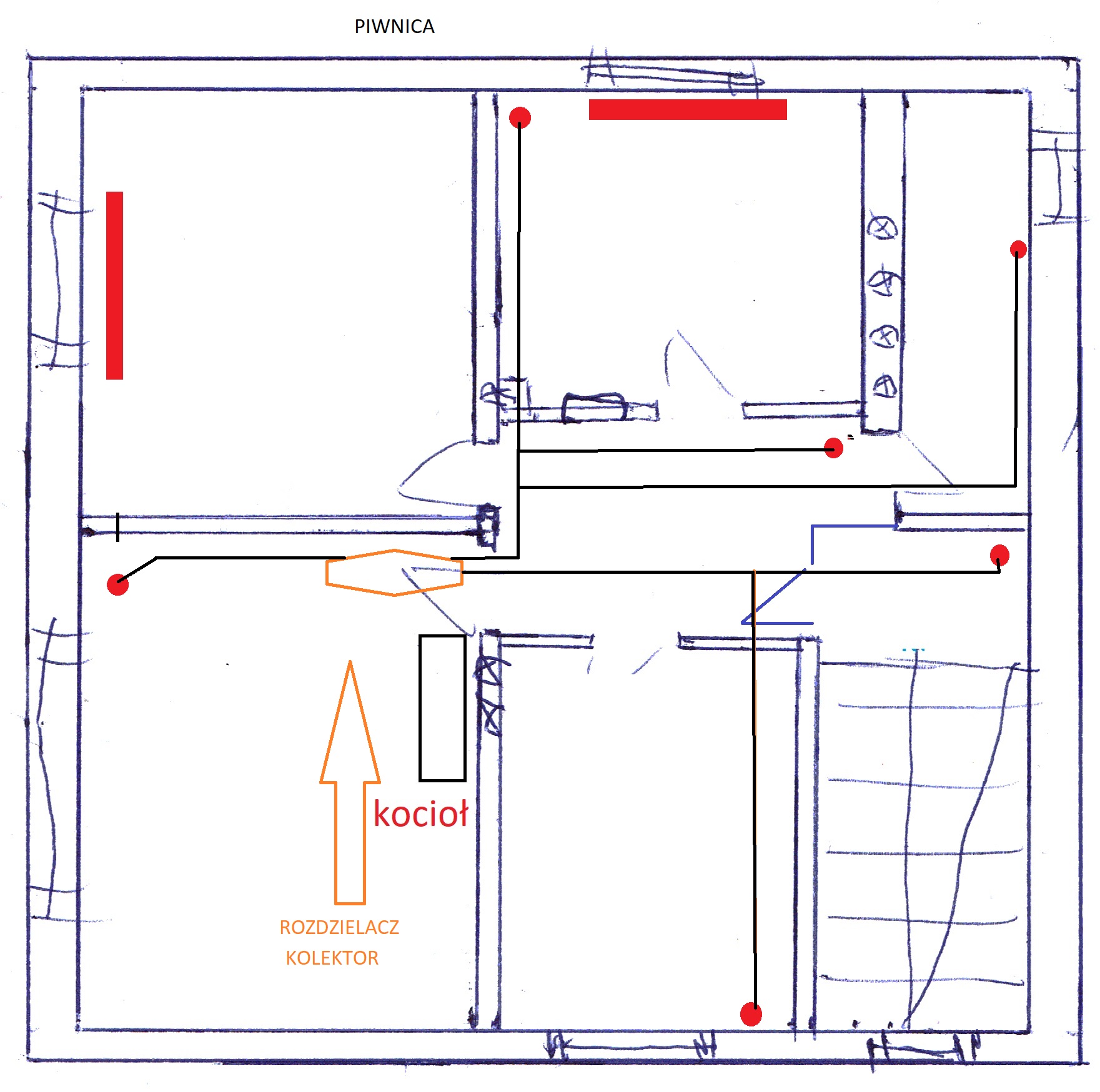 w domu jest stara (bardzo stara instalacja CO zasilana kotłem węglowym. Powoli chcę to wymieniać ale wymiana wszystkiego na raz nie przejdzie w moim przypadku dlatego zaczynam od grzejników i rur. Układ jest jak w załączniku, są trzy poziomy tj, piwnica gdzie jest kocioł (wysokość 1,7m) parter (wysokość 2,7m) i piętro (wysokość 2,6m). Każda kondygnacja ma taki sam układ tyle że w piwnicy nie ma grzejników. Na rysunku podałem obecne średnice zewnętrzne rur i na ile znalazłem średnice wew. w calach. Piony również są opisane te co idą w górę i w dół. Moje pytanie dotyczy rur bo mam zamiar je zmienić na PP lub pex jak dobrać średnicę. Czy też może ktoś podać dokładnie jakie stosować średnicę??