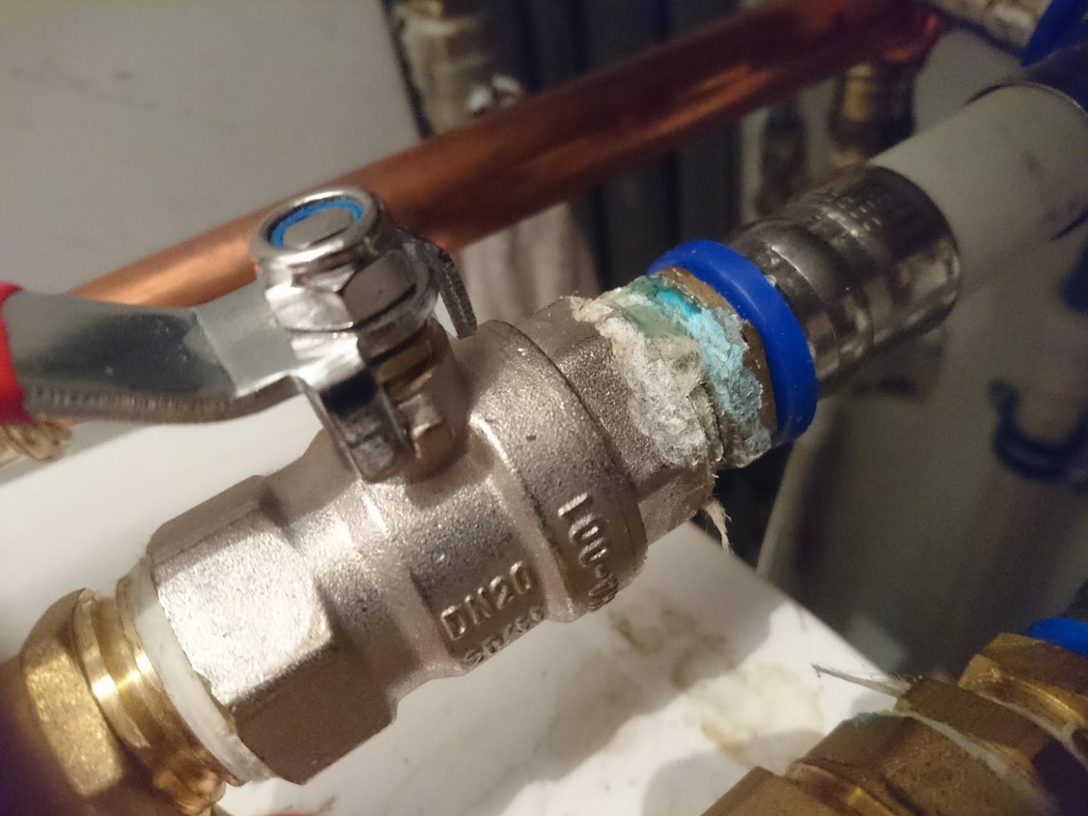 proszę o opinię co do jakości wykonanej instalacji (podłączenie kotła gazowego ze zbiornikiem na ciepłą wodę). Na łączeniach i śrubunkach występują zielone zacieki w tym jeden wielki. Załączam zdjęcia. Czy te zacieki to cos normalnego jak mówi instalator czy tak jak ja uważam, że to przedostająca się woda?