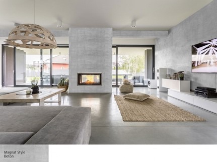 To fajny pomysł, na czasie. Zamiast płyt, których montaż może być trudny, polecamy Beton Magnat Style, jest odporny na wysokie temperatury i łatwy do utrzymania w czystości.