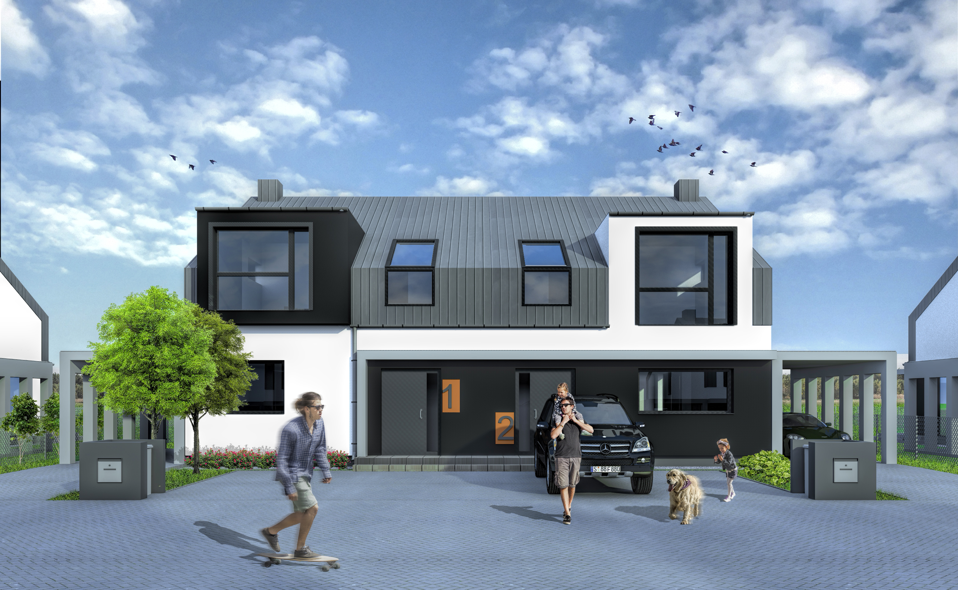Jesteśmy na etapie zakupu połowy bliźniaka od dewelopera . Na wstępnie dodam ,że jestem amatorem jeśli chodzi o budowlankę .Bliźniak nie posiada on garażu i mamy w planie jeśli będzie to możliwe wykonanie garażu szkieletowego pokrytego blachą (podobną jak dach ) zdj w załączeniu . z prawej strony domu deweloper miał w projekcie wiatę , z której zrezygnowaliśmy ponieważ chcemy zrobić właśnie swój garaż z lokalem na biuro . Nie wiem gdzie uzyskać informacje czy właśnie taki mogę postawić: