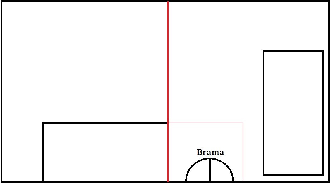 Podział działki z granicą idącej po ścianie budynku