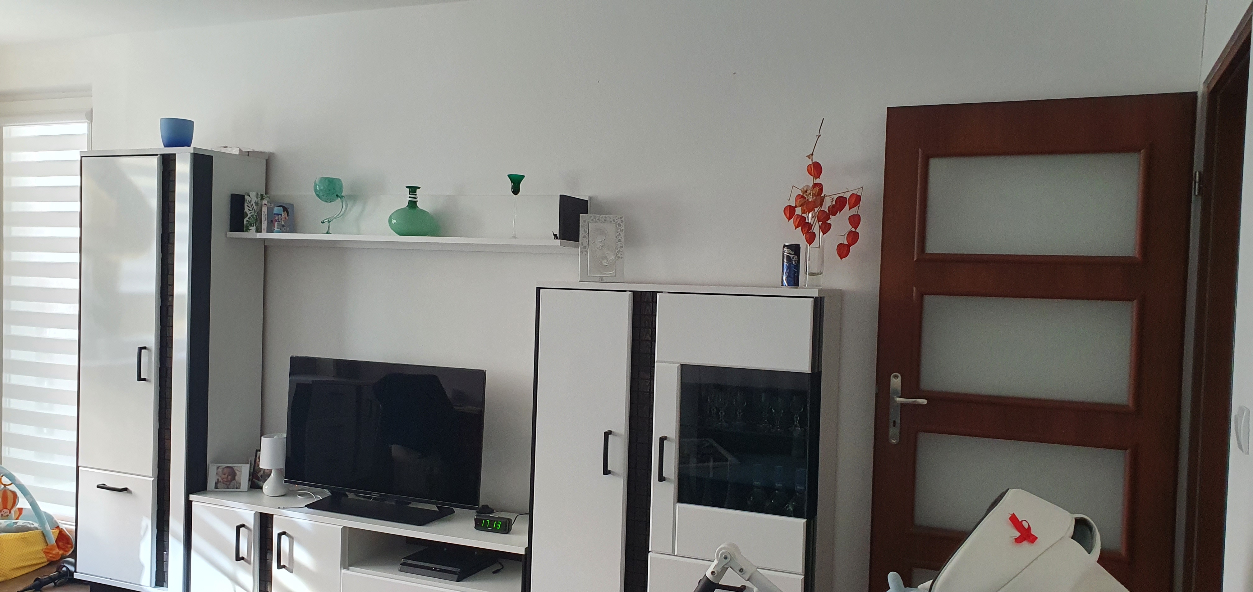 Witam jakiś czas temu wprowadziłem się do nowego mieszkania. Poprzedni właściciel niedawno malował salon więc jego odświeżanie sobie odpuściłem. Teraz stwierdziłem że brakuje temu pomieszczeniu jakiegoś charakteru. Wszystkie ściany są białe, przez co wszystko tak jakby zlewa się ze sobą. Chciałbym żeby chociaż jedna ściana np. z rtv wyróżniała się jakoś. Nie mam pomysłu jaki kolor dać. Chciałbym po prostu żeby to wszystko ze sobą współgrało. Foto pomieszczenia.