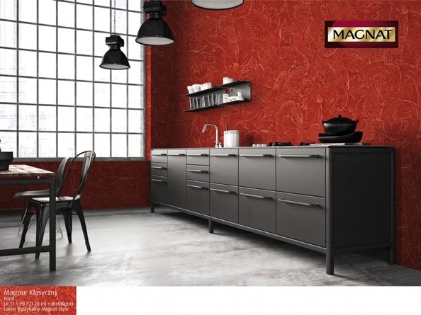 Cegła funkcjonuje w aranżacji wnętrz niemal od tak dawna, od kiedy ją wymyślono. Ma wielu zwolenników, bo wprowadza do pomieszczeń szczególny klimat. Surowy mur ceglany wymaga właściwego zabezpieczenia impregnatem bezbarwnym lub farbą, bo cegła nie jest odporna na zabrudzenia. Alternatywą dla ceglanych dekoracji mogą być ściany betonowe lub kamienne, oryginalne lub imitacje wykonane przy pomocy struktur dekoracyjnych Magnat np. Marmur klasyczny czy Trawertyn.