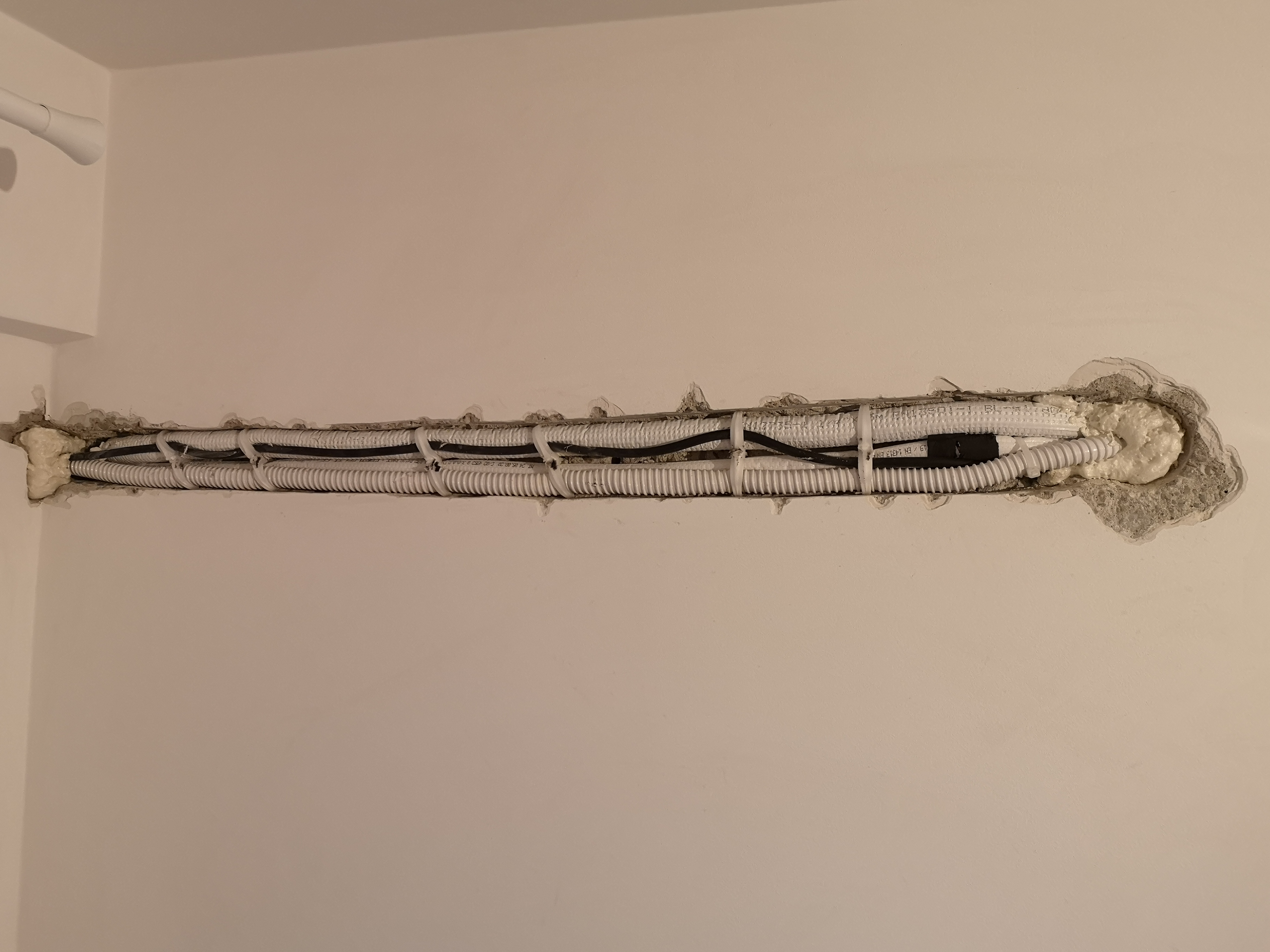 Po instalacji przewodów do klimatyzatora pozostało doprowadzić ścianę do stanu pierwotnego.