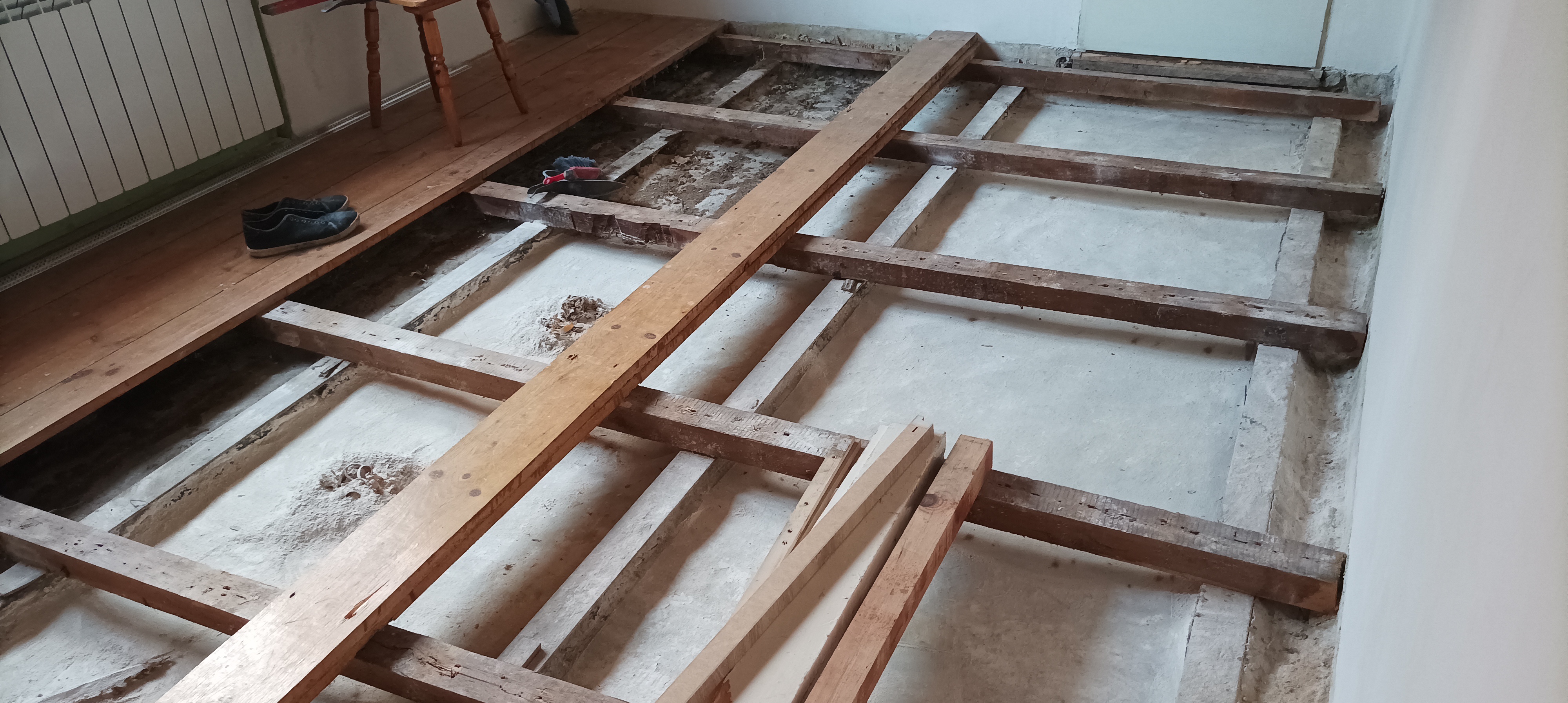 chciałbym zainicjować nowy temat odnośnie stropu Kleina. Rozpoczynam remont domu wybudowanego pod koniec lat 60-dziesiątych ubiegłego wieku. Zamierzam zerwać starą podłogę z desek ułożonych na legarach. W załączeniu kilka zdjęć stropu. Od dołu nie ma ugięć. Zamierzam do wysokości teownika wypełnić przestrzeń keramzytem, wyrównać styropianem 2 cm a następnie na to wylać posadzkę o grubości 4cm. Ciężar starej podłogi drewnianej to około 800 kg, nowej to waga 1000 kg. Jak widać na górze jest rozwinięta jakaś papa i posypana wapnem, nie wiem czy tą papę zostawić czy usunąć? Czy zastosować folię paro-przepuszczalną? Jeśli ktoś przerabiał taki temat proszę o radę. Pozdrawiam.