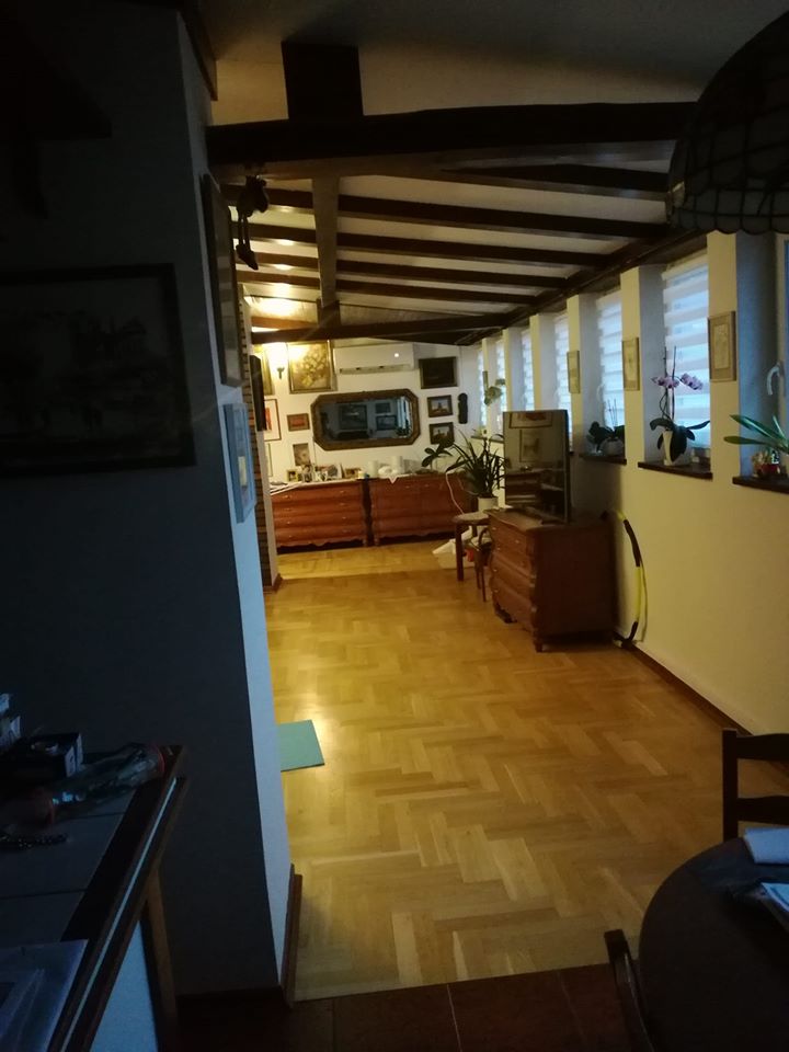 - Mieszkanie dwupoziomowe na ostatnim piętrze (drugi poziom to poddasze) (na 1 poziomie salon z aneksem kuchennym, łazienka, przedpokój. Na 2 poziomie dwa pokoje i garderoba bez okna) wszystkie okna w mieszkaniu skierowane w tą samą stronę. Na 1 poziomie jedno duże okno z balkonem w salonie z aneksem. Na 2 poziomie dwa okna dachowe w każdym z pokoi.