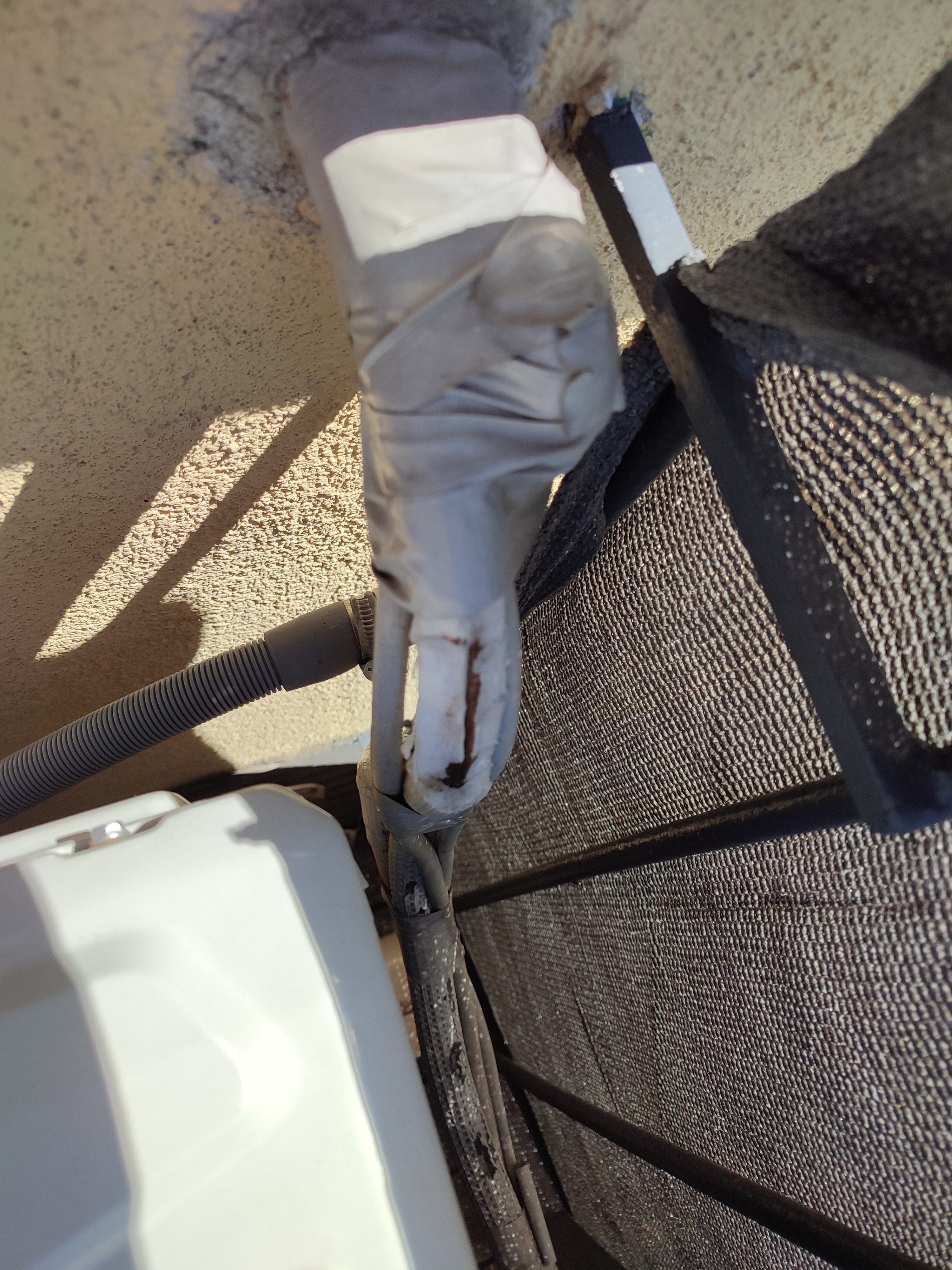 Zauważyłem ostatnio, że na balkonie mam obdarty przewód od klimatyzacji, wygląda jakby jakiś ptak to wydziobał. Powiedzcie mi proszę, czym powinienem to zaizolować, tak żeby nie było strat, i żeby sytuacja się nie powtórzyła? Podrzucam zdjęcia do podglądu.