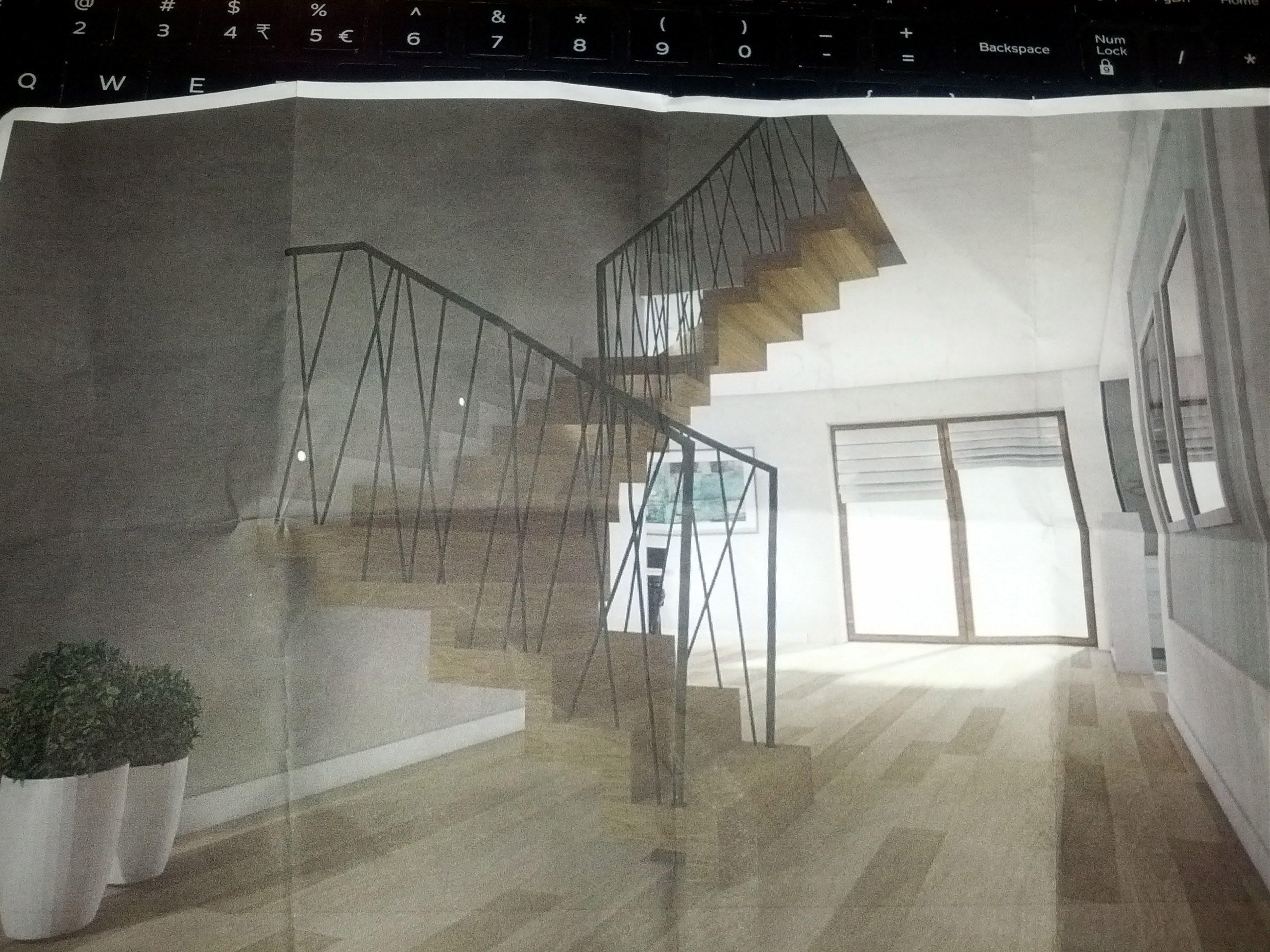 Balustrada ma wyglądać jak na zdjęciu. Na początku był pomysł, żeby w miejscach, w których pręty dotykają schodka, wywiercić dziurę i zamocować go za pomocą kleju, ale przy takiej ilości prętów jest to chyba niewykonalne. Następnym w miarę prostym w wykonaniu pomysłem, było to, żeby na dole zamontować płaskownik pasujący kształtem do schodów i środkowe pręty zamocować do niego, tak, żeby były sztywne. Jednak znajoma stwierdziła, że tak będzie wyglądało paskudnie i chciałaby, żeby było to zrobione jak na zdjęciu, czyli pręt miałby dochodzić do samego schodka.